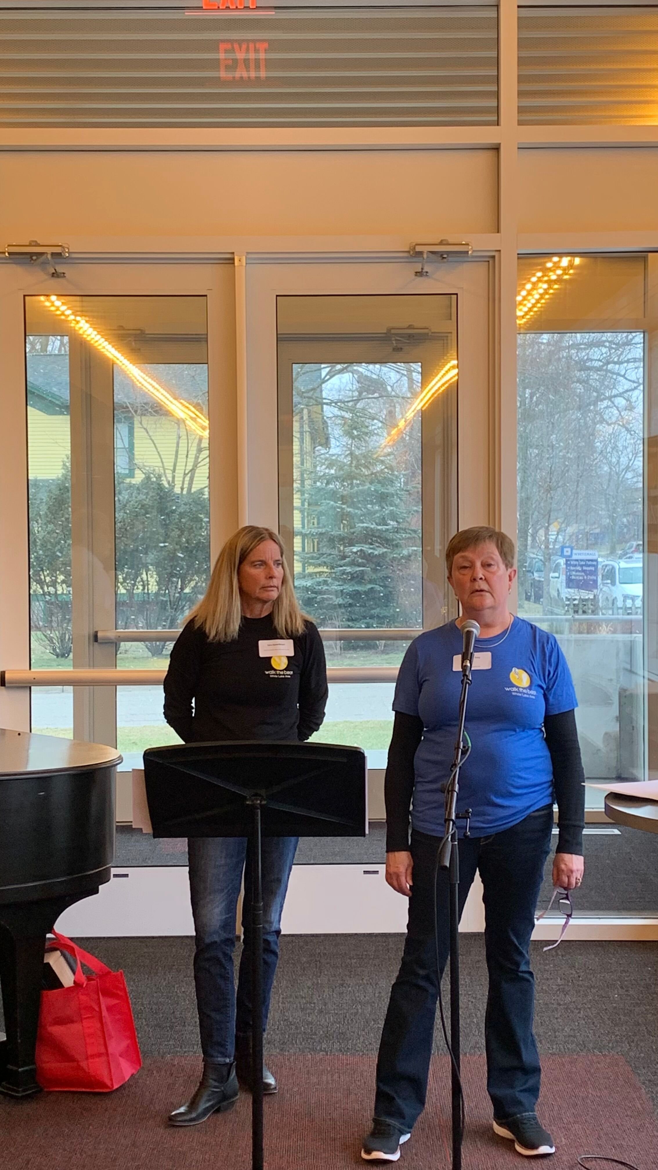 Walk the Beat White Lake Area Director Sara Kane Smart and Awards Committee Chair Suzanne Troy kick off awards ceremony.